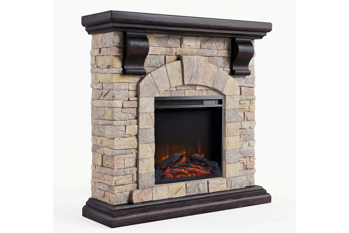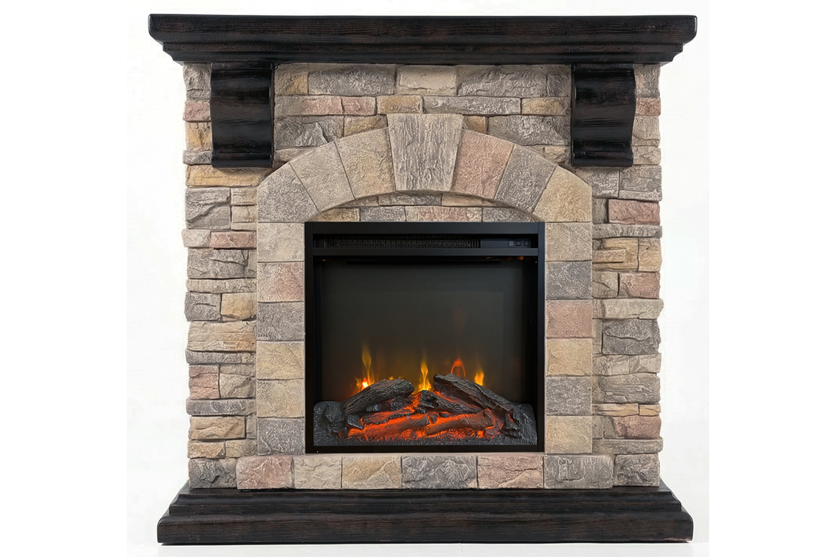 ロイドグランデ18インチ電気暖炉本体+暖炉棚のセット商品です。石組み風の重厚なデザインのマントルピースに、LED電球の光で作り出す炎が本物そっくりに揺らめきます。電気暖炉本体Sタイプ。