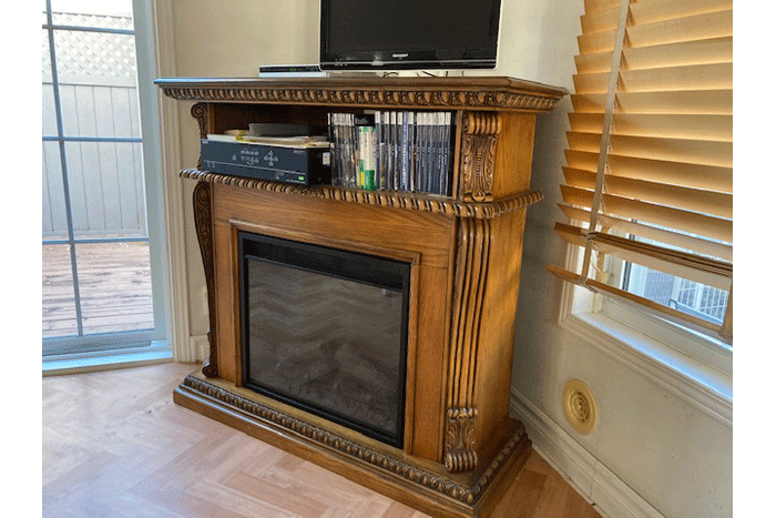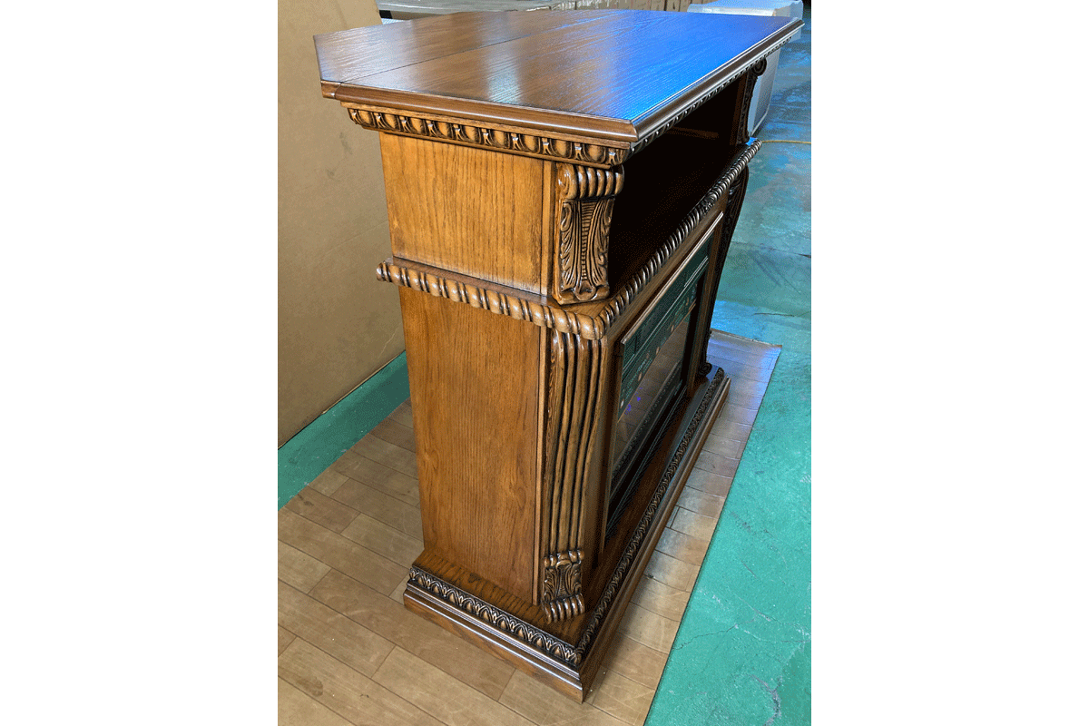 暖炉棚の背面は、フラットとコーナーの兼用タイプ。お部屋にあわせて、お好きな形でお使い頂けます。メディアコンソールとしてお使い頂くのもオススメです。