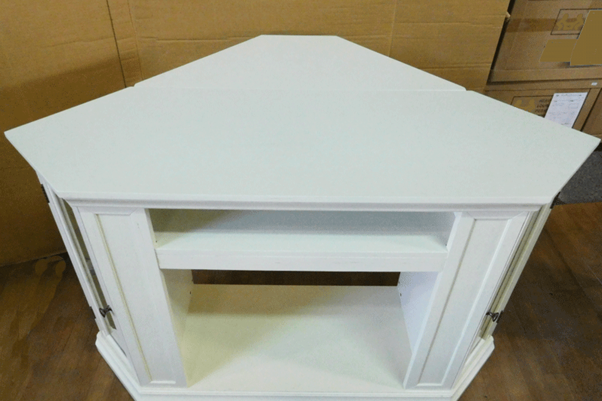 天板の下にオーディオ機器が収納可能です。両サイドのドアは中が見える便利なガラス付きドアになっています。