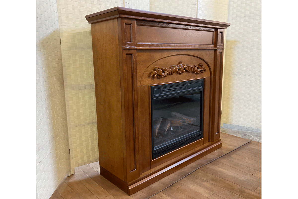 伝統的なデザインに繊細な彫刻が特徴の暖炉棚です。