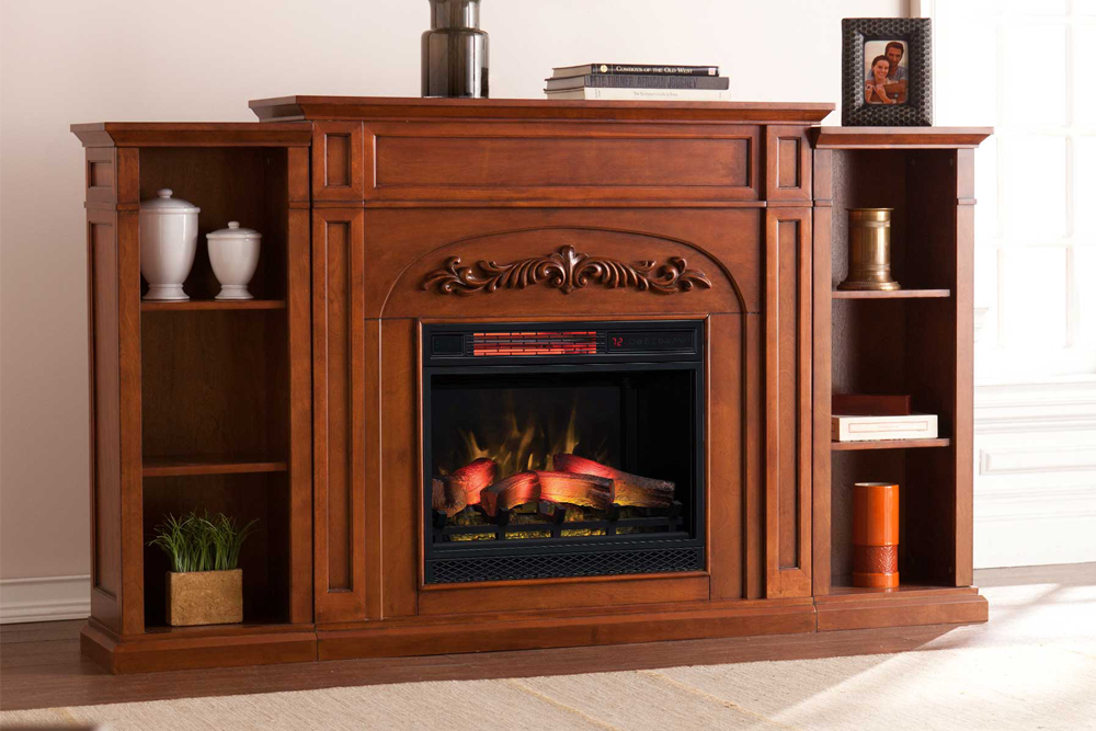 23インチ遠赤外線3D電気暖炉 シャンティ(ブックケース付き)